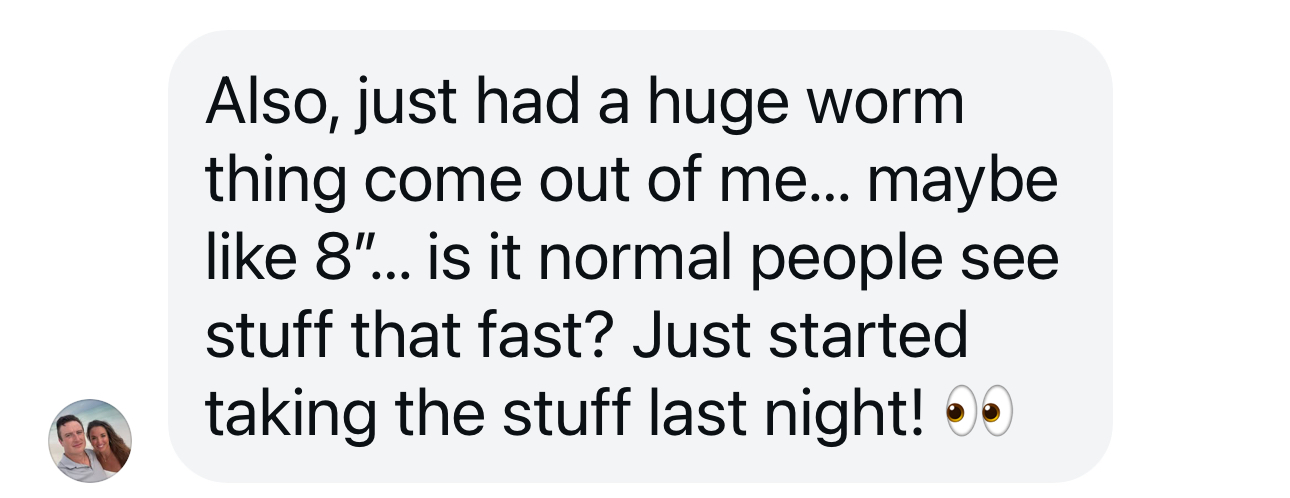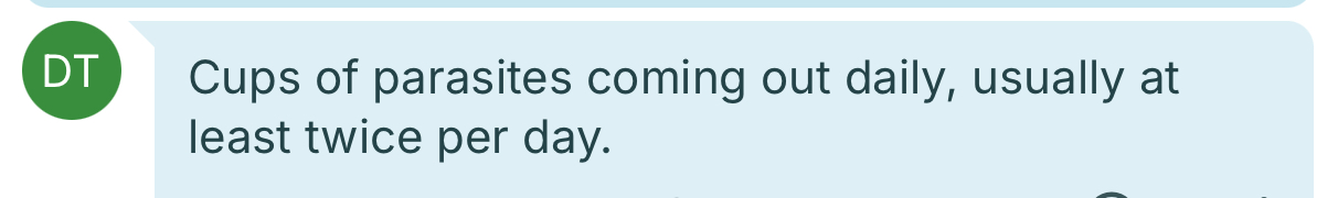 " I was super hesitant to even do a parasite cleanse. I truly can't believe what I am seeing come out of me!! I feel better already! "